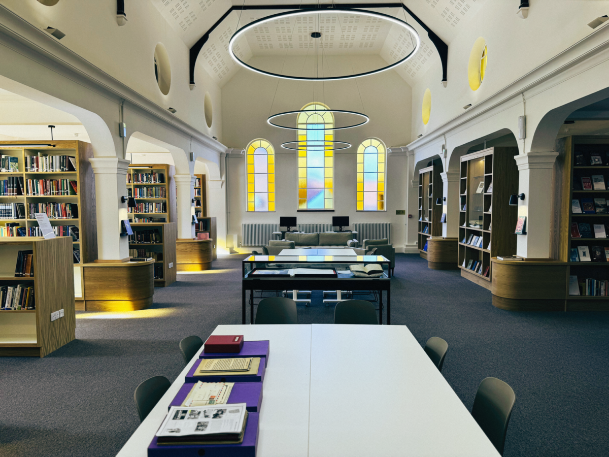 Published on: 6 Mar 2026 Archivist in the Spotlight: Building a New Home for Jewish Learning with Cassy Sachar Cassy Sachar in the Lily Montagu Reading Room - Hidden Treasures/Kate Campbell-Payne In the fourth part of our ongoing Archivist in the Spotlight series shining a light on the people preserving, sharing, and celebrating Jewish heritage across the UK, Cassy Sachar, Senior Librarian at Leo Baeck College, tells us about the creation of their library’s brand new reading room. A Library That Reflects Our College When I talk about our library at Leo Baeck College, I always start with its extraordinary breadth. We are a progressive rabbinical school with collections spanning roughly five hundred years of Jewish learning, culture, and creativity. Our shelves hold everything from cookery and art to philosophy, pastoral care, and social justice. It has always felt important to me that our students can explore every facet of Jewish knowledge – intellectual, spiritual, cultural, and communal. Our archival collections are just as remarkable. Among my favourites are the indexed sermons of Rabbi John Rayner, which total over a thousand documents and almost all typewritten apart from one handwritten the week John F. Kennedy was shot while Rayner was visiting America. All these collections have shaped generations of rabbis who have trained at Leo Baeck, and I feel being their steward is deeply meaningful. A Space for Learning, Community, and Wonder For decades, we’ve dreamed of moving the library out of its basement home. For years, the plan has been to create a new space in the bright, spacious first‑floor room that once served as a synagogue hall. Plans came and went, but ultimately couldn’t be realised. The room before being developed – SquareFeet Architects/Leo Baeck College Then, while I was on parental leave, everything changed. I received a phone call letting me know that an anonymous donor had gifted us the means to finally make the move possible. It was surreal, overwhelming, and profoundly humbling. Creating this new library was far more complex than simply moving books upstairs. Because the room sits above ground level, structural engineers told us exactly where shelves could go and how high they could be. Surprisingly, those constraints sparked creativity. By working closely with SquareFeet Architects, we transformed limitations into features: a bright study space with black beams, glass vitrines, warm wood accents, and two adjoining rooms that can open into one another for events. The design preserved the original architecture while making it modern. I wanted the space to feel studious yet welcoming – a place rooted in history but alive with conversation, curiosity, and community. The new Lily Montagu Reading Room – Leo Baeck College With 60,000 volumes in our full holdings, we knew not everything could move upstairs. Instead, we decided to create a curated collection for the reading room of 13,000–15,000 books that includes essential materials, highlights our specialist strengths, and features new works that reflect the evolving landscape of Jewish thought. Choosing them has been unexpectedly joyful. We held “book‑selection parties” with faculty – fuelled by biscuits and cake – where colleagues debated, reminisced, and laughed over which titles absolutely *had* to make the cut. As visitors enter the new reading room, if they can make it past the delights of the New Books Shelves, they are led to one of our display vitrines. These glassed-in cabinets work with open display shelving to allow our most precious items to be exhibited safely alongside related material, which can be handled more freely. Our inaugural exhibition “Beautiful Books” celebrates the riches and diversity of our collections and explores the significance of making, reading and preserving beautiful Jewish books. It’s a fascinating opportunity to explore where Jewish books meet art and design over the past 500 years. Alongside the exhibition, as well as welcoming groups to explore the significance of these beautiful books more deeply, we will be holding a Craftivism Workshop, learning about using craft processes as a campaigning tool and a multi-sensory reading of the Book of Ruth, exploring the Shavuot reading through art and language. Everything about the new library is, in many ways, an evolving experiment. And that’s really exciting. Unlocking the Archives One of the biggest opportunities the move creates is the ability to bring together archival material that, until now, had been scattered across locations throughout the College. A couple of the collections I’m most excited to feature are the Bogdanski Papers and the Rabbi Bruno Italiener Archive. Papers from the Rabbi Bruno Italiener Archive – Leo Baeck College A box labelled only “Bogdanski papers” had been donated around 10 years ago but remained untouched. Inside, we found the personal research and musical compositions of Majer Bogdanski, a Polish-born singer and composer who became a key figure in preserving and creating Yiddish music in London. It also contained some heartbreaking correspondence documenting his search for his wife after the Holocaust. That story speaks not just to Jewish history but to the immigrant experience as a whole – the idea of people leaving their families and not knowing what has happened to them and then trying to find them again. It’s incredibly powerful. Rabbi Bruno Italiener’s Archive holds photographs, research notes, and early‑twentieth‑century glass slides. He was a Rabbi in pre‑war Germanyand a scholar of medieval Hebrew manuscripts. As someone who researches this area myself, seeing his working process – his marginalia, his methods – feels like being invited into his mind. Glass plates from the Rabbi Bruno Italiener Archive – Leo Baeck College These discoveries reaffirm why this new space matters: we can finally display, teach with, and celebrate materials tha