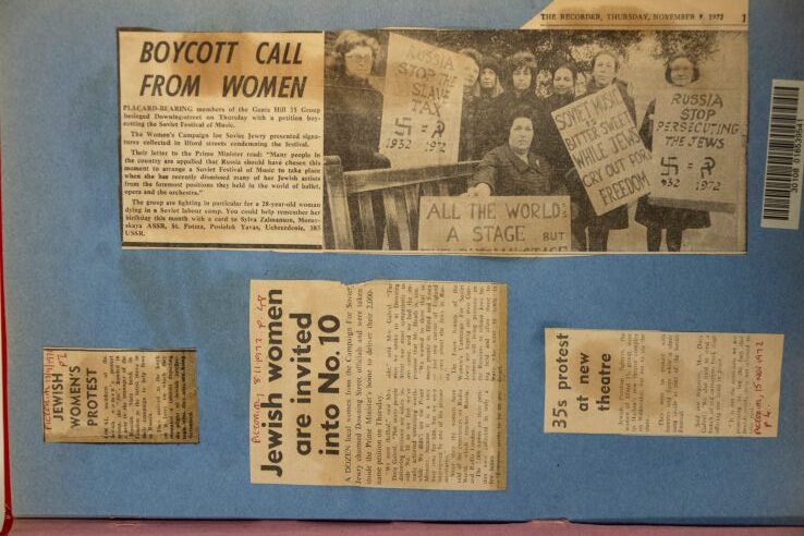 Published on: 6 Jan 2025 Collection Encounter: Redbridge Museum & Heritage Centre The London Borough of Redbridge is one of the most culturally diverse London suburbs, geographically connected to both East London and the fringes of Essex. Inside the modern Redbridge Central Library in the busy town centre of Ilford you can find Redbridge Museum and Heritage Centre, which is where I met manager Gerard Greene. Before we went to explore the newly redeveloped museum, we made our way into the Heritage Centre study room on the same floor to meet with local resident Bernard Chaplin, who was responsible for rescuing and putting together the archive of Newbury Park Synagogue, which is now held at the Heritage Centre archives. Redbridge Central Library which houses Redbridge Museum & Heritage Centre • Hidden Treasures/Rachel Lichtenstein On a table in the main space were four large binders containing the material Bernard had gathered from the synagogue, which had opened in 1973 and closed in 2015. ‘It was an orthodox synagogue and a lot of the congregation there came originally from the East End,’ said Bernard as he flicked through the many pages in the neatly arranged chronological folders he had compiled. Collectively, these folders contain a great array of fascinating archive material, from historic photographs of fundraising dinners to newspaper clippings, letters, wedding invitations, pamphlets, an order of service from the consecration at the synagogue and many other items besides. It is a wonderful collection that gives a real sense of the rich life of a British synagogue in the late 20th and early twenty-first centuries. ‘It was so much more than just a place of worship,’ said Bernard who had been a member there for many years. Gerard had also selected some other Jewish material from the Heritage Centre’s extensive collections for us to view, including a scrapbook of newspaper cuttings about the Jewish community in Redbridge from 1972 to 1979 which had been put together by Redbridge libraries. There are newspaper cuttings pasted inside the scrapbook from articles about many subjects which were important to the local Jewish community of that period such as Jewish women’s protests about the condition of Jewish people in the Soviet Union, antisemitic graffiti, new schools and community appeals. ‘There’s so much here and it really gives an indication of the size of the Jewish community in Ilford in the 1970s, which was one of the largest in the UK,’ said Gerard as we examined the scrapbook. ‘There even used to be a Redbridge Extra supplement distributed with the Jewish Chronicle, which again gives a good sense of the community size.’ Another folder on the table was filled with contemporary pamphlets sent to the local library in 2005 on local Jewish community activities ranging from IT classes to Kabbalah, Israeli dancing, and lessons on Hebrew and Jewish history. Soon after we were joined by Denise Fluskey, another local resident who had been involved with the newly reopened museum, which is on the same floor as the Heritage Centre. Thanks to a £100,000 grant from the National Lottery Heritage Fund, and funding from Vision Redbridge Culture & Leisure, Arts Council England, Art Fund and others, the permanent Redbridge Museum has now re-opened, with state-of-the-art display cases and interactive exhibits sharing stories and artefacts of the Redbridge area dating right back to the Ice Age and on to the present day. ‘The museum explores 200,000 years of history in Ilford, Wanstead, and Woodford’ said Gerard whilst pointing to a display of mammoth bones in the first case. Gerard was part of the original team who developed the first iteration of the museum in 2000, and he is rightly proud of what his small team has managed to achieve with this amazing new exhibition. We walked through the museum, passing display cases packed with fascinating objects, archive photographs, historic maps, and interactive displays that tell the story of how Redbridge developed from marshland and forest to rural villages then into the diverse and busy suburb of London it is today. The final section of the museum is called Moving Stories and looks at the history of the borough from 1939 up to the present day. Each of the display cases in this section are based around individual stories and tell histories of communities and events such as the local impacts of the Second World War. One of the displays explores the Jewish history of Redbridge and includes artefacts loaned by Denise and Bernard, so it was wonderful to be with there with them to hear their very personal stories behind these items. In the centre of this display is a painting from the 1970s by Denise’s late father Stanislaw Brunstein, which depicts a traveling band of Klezmer musicians. ‘These were the kind of characters and scenes that he committed to memory, from his childhood in Poland. He could recall the traditional villages he’d visited in his mind’s eye, and when it was all destroyed, he said as an artist he felt he had a mission to commit memory to canvas,’ said Denise, as we looked at the expertly painted rendition of the traditional shtetl scene. Denise’s parents were both survivors of the Holocaust. Her father had been a scenic painter for the Yiddish theatre in Warsaw before WWII. He ended up in a Russian prison then in a Siberian labour camp, before joining the Polish Eighth Army then fought at the Battle of Monte Cassino. ‘His parents were gassed in Treblinka, and he was an only child, so there were absolutely no members of his family left in Poland. He came to London and continued his scenic design work in the Yiddish theatre in the East End at the Grand Palais and that’s where he met my mother, Esther, who was a survivor of Auschwitz and Belsen, and who was acting on the Yiddish theatre stage,’ said Denise. In later years the Brunstein’s moved to Ilford as so many East End Jews did, which was where