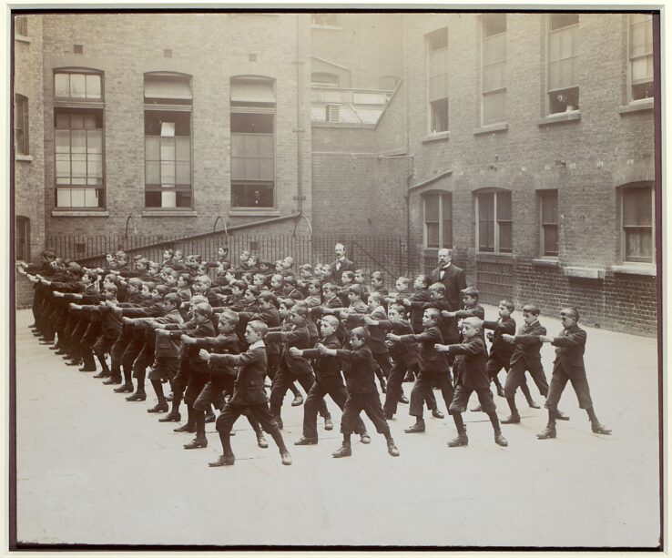 Jews’ Free School Boys at Jews’ Free School • JCR-UK This fabulous photo, from the treasure-house that is JCR-UK, shows boy pupils, undated, performing a drill at the Jews’ Free School in London. Louise Messik, writing on the JCR-UK site, describes the Jews’ Free School, (which still exists as JFS to this day, in a different location): The Jews’ Free School is Europe’s largest and most successful Jewish secondary school. It was established in 1732 as the Talmud Torah of the Great Synagogue of London, serving orphans of the community.In 1822, the School was relocated to Bell Lane in the heart of the East End where, throughout the 19th century, it absorbed thousands of immigrant children. At one time JFS had 4,000 children on roll and was the largest school in the world.In the inter-war period, children often came straight from the Kindertransport to JFS. During World War II, students were evacuated to East Anglia and Cornwall and the School was destroyed by enemy action. It re-opened in 1958 in Camden Town where its location was central for the London Jewish community of the late 1950s.Maintaining its tradition of mirroring the demography of the community, JFS left Camden Town in 2002 and relocated itself to state of the art facilities closer to the heart of North West London. The JFS archives are partially held by The London Archives. Search the database and see more photos here. Discover more Hidden Treasures Hidden Treasures: Celebrating the documents, photos and artefacts in British archives that tell the story of Jews in Britain The London Archives Immigration | Local History | Religion | SocialPartially online The London Archives (formerly London Metropolitan Archives) is a public archive, housing a broad collection of social, religious, and local history records. […] Jewish Communities and Records – United Kingdom (JCR-UK) Communal Records | Databases | Family History | Historical Documents | Jewish Life | Local History | ReligionOnly online Jewish Communities and Records – United Kingdom (JCR-UK) is an online project whose aim is to record details of all Jewish communities […] Jews’ Free School Classroom, 1905 Classroom image from the diary of Samuel Morris Rich • Southampton Anglo-Jewish Archives