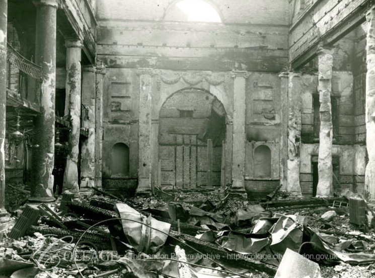 The Great Synagogue of London The Great Synagogue London, 1941 • Imperial War Museum This treasure, from the The London Archives, is an image of the The Great Synagogue of London in the aftermath of its destruction during the Blitz in 1941. The synagogue was first built in about 1690 at Duke’s Place, north of Aldgate. It became the centre of Ashkenazi Jewish life in London after Jews were allowed back to Britain by Oliver Cromwell. Bomb Damage to Great Synagogue • London Metropolitan Archives The synagogue was rebuilt in 1722 and consecrated on Rosh Hashana. An enlarged building opened in 1766. Between 1788 and 1790 a third synagogue was built on the site, in the classical style. The architect was James Spiller. Unusually for the time, the principal donor was a woman, Judith Hart Levy. It was redecorated and repaired in 1832 and 1852 by John Walen, and restored again with small renovations in 1899 and 1930. On the night of May 10/11, 1941, during one of the last major attacks of the Blitz, the synagogue was destroyed. The images below, from the Imperial War Museum, show the interior of the synagogue in early 1941 just before it was bombed and a painting of the interior of the synagogue from 1809: The Great Synagogue London, 1941 • Imperial War Museum Painting of the interior of the Great Synagogue from 1809 Discover more Hidden Treasures Hidden Treasures: Celebrating the documents, photos and artefacts in British archives that tell the story of Jews in Britain The London Archives Immigration | Local History | Religion | SocialPartially online The London Archives (formerly London Metropolitan Archives) is a public archive, housing a broad collection of social, religious, and local history records. […] Imperial War Museum Family History | Holocaust | ImmigrationPartially online The Imperial War Museum (IWM) is a national museum based in London, whose archival records cover Holocaust testimony, military history documentation and […] JFS Hebrew Lesson Hebrew Lesson, Jews’ Free School • London Metropolitan Archives